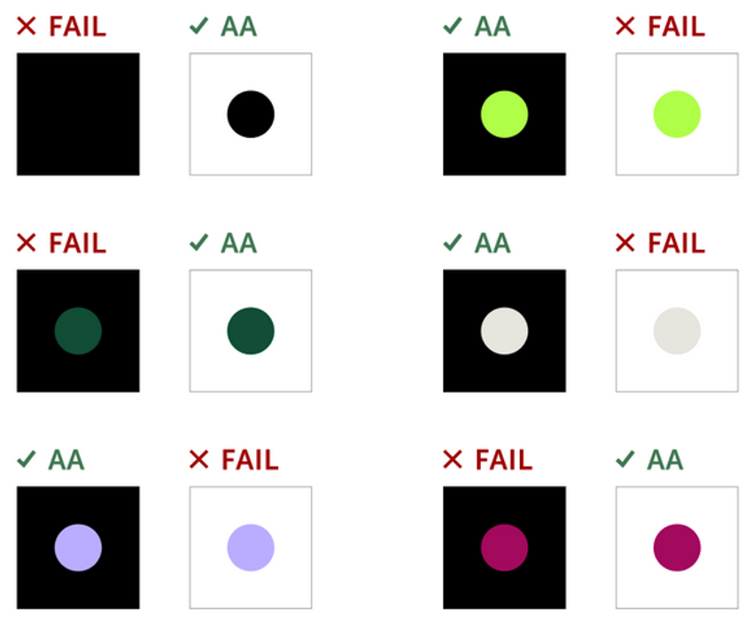 As expected, not all colours within the Paraorchestra palette pass contrast checks against both black and white backgrounds.