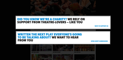 As a new writing theatre, call-to-action banners are intentionally quite wordy – but there is a method and consistency: