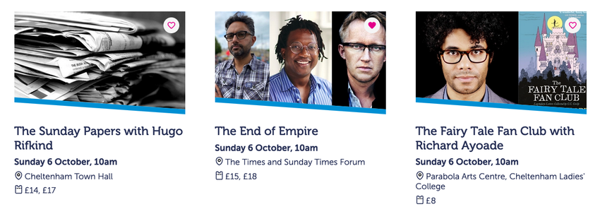 Glitchiness aside, the concept of a Wishlist is a good one. So, having reviewed the feature with the Cheltenham Festivals team, we decided to keep it as part of the new website.