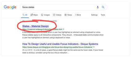 You know those lines that appear under text links in Google search results when you hover on them? They also appear when you tab through the results using a keyboard. This makes it clear what elements on a page are ‘clickable’ to someone using assistive tech.