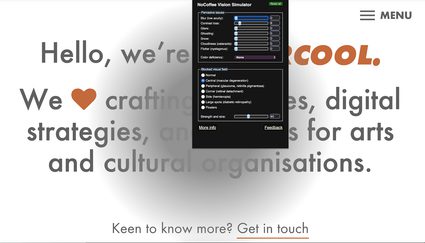 No Coffee is a free Chrome extension that simulates different vision impairments. It puts a filter over your web page that shows how a user with diabetic retinopathy, or low contrast sensitivity, or a number of other vision problems, might see it. It’s not a scientific instrument; it’s just to give you a rough idea!