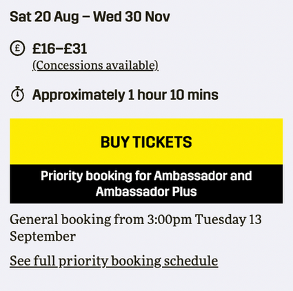 To offer members a great experience with lots of clear and useful information, we included details such which priority booking period was currently open, a link to view all priority booking period dates and, for non-members, information about when general booking opens. Due to the complexity of EIF’s Membership scheme, this information is all editable by the EIF team.