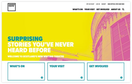 Design-wise, there's clear emphasis on the theatre’s punchy, confident brand identity and tone of voice. We've allowed plenty of room for playful use of copywriting – after all, the Traverse is Scotland's new writing theatre.